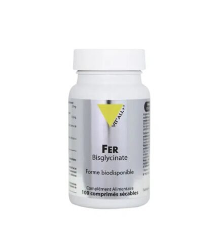 Le Fer Bisglycinate VIT’ALL+® est hautement biodisponible et possède une bonne tolérance digestive. Il aide à réduire la fatigue, améliore la production d’énergie, participe au transport de l’oxygène dans l’organisme et soutient le système immunitaire.