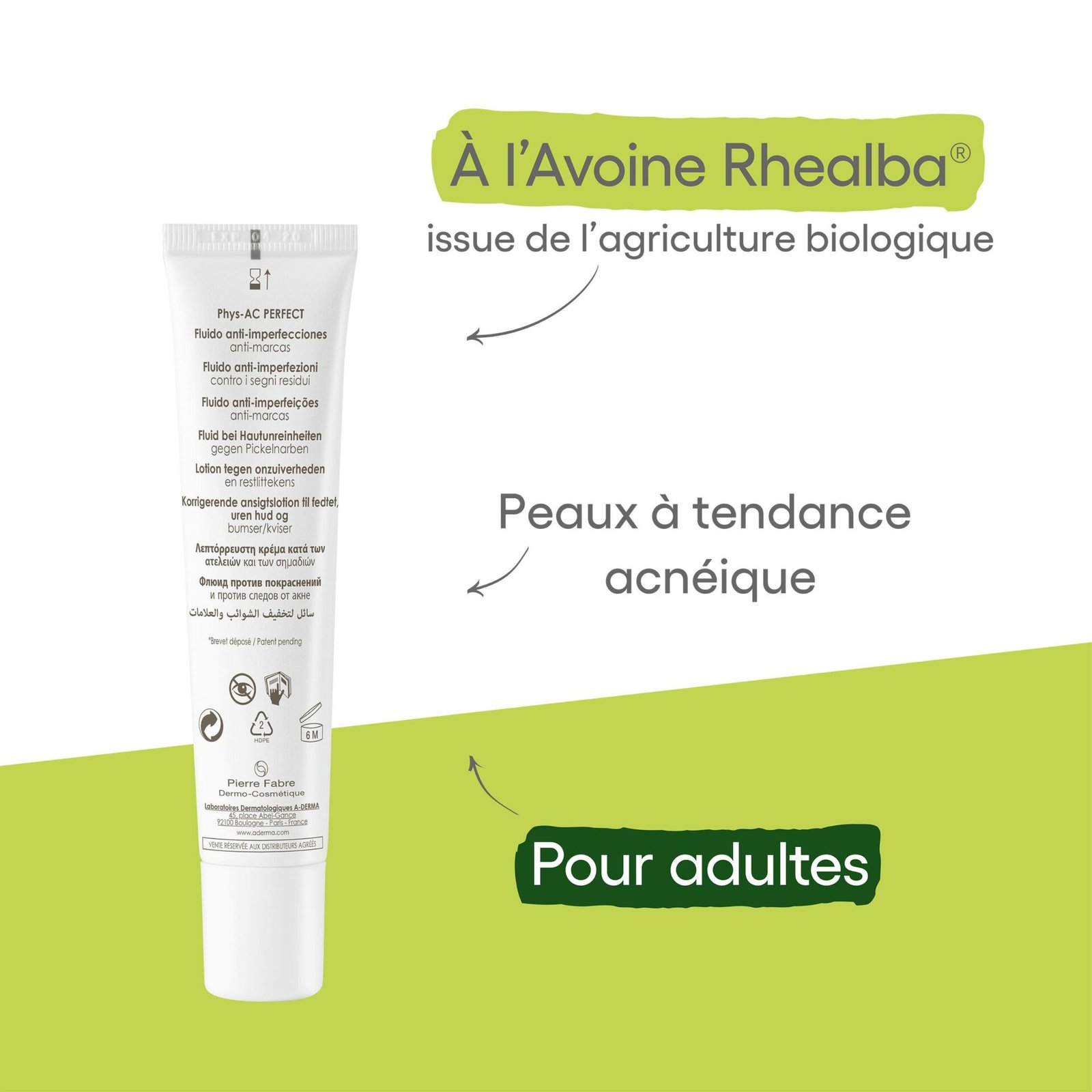 A-DERMA — PHYS-AC PERFECT FLUIDE VISAGE ANTI-IMPERFECTIONS ANTI-MARQUES — Phys-AC Perfect 40 ml et A-DERMA
