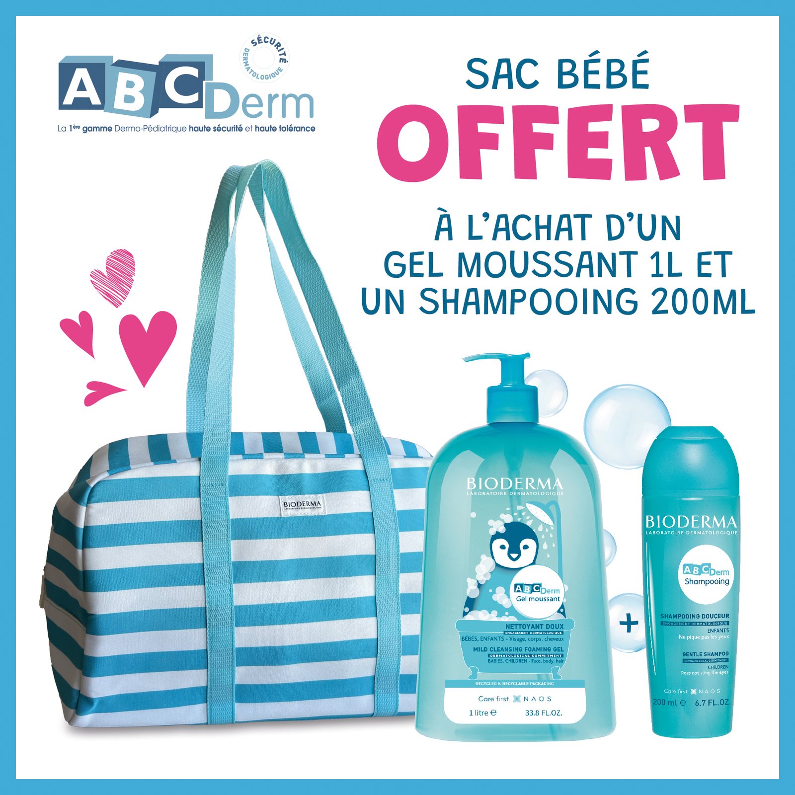ABCDERM Gel Moussant 1L + Shampooing 200ml = Sac Bébé OFFERT