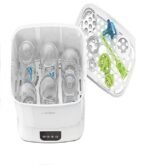 Avec la capacité de stériliser jusqu’à six biberons en 55 minutes, il propose également la possibilité de stériliser, sécher ou les deux en même temps grâce à une simple pression sur un bouton. De plus, deux filtres HEPA capturent jusqu’à 95 % des particules en suspension dans l’air, garantissant un environnement de séchage plus propre.