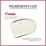 Formule INCI : Aqua, Homosalate, Octocrylene, Glycerin, Butyl Methoxydibenzoylmethane, Ethylhexyl Salicylate, Glyceryl Glucoside, Glyceryl Stearate Citrate, Cetearyl Alcohol, Phenylbenzimidazole Sulfonic Acid, Butyrospermum Parkii Butter, Lauroyl Lysine Butylresorcinol, Glycyrrhetinic Acid, Dimethicone, Alkyl Acrylate Crosspolymer, Sodium Carbomer, Trisodium EDTA, 1-2-Hexanediol, Phenoxyethanol, piroctone-olamine, Parfum.