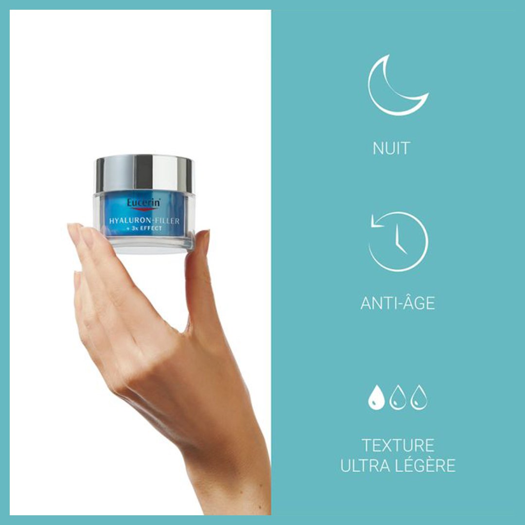 EUCERIN Hyaluron-Filler + 3x Effect, Soin de Nuit, Booster d’Hydratation 50ml.