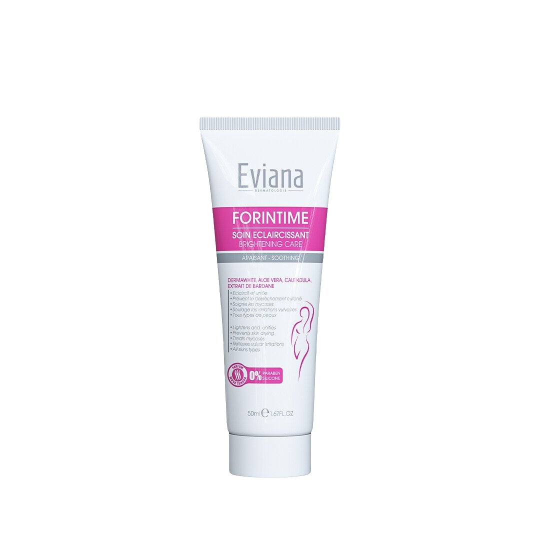 Eviana Forintime Creme Intime 50ml, crème éclaircissante douce et efficace pour uniformiser et illuminer la peau sensible de la zone intime.