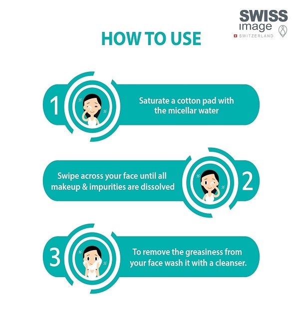 - Appliquer matin et soir sur le visage, les yeux et les lèvres à l’aide d’un coton.