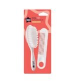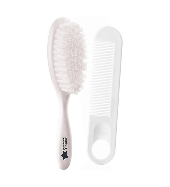 L’ensemble brosse et peigne pour bébé Tommee Tippee dès la naissance et est sans BPA.
