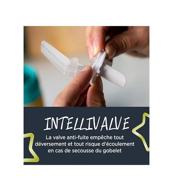 • Résistant aux fuites et aux secousses : Notre technologie anti-fuite unique INTELLIVALVE garantit que cette tasse d’entraînement est totalement étanche, même lorsque la tasse est retournée ou secouée.